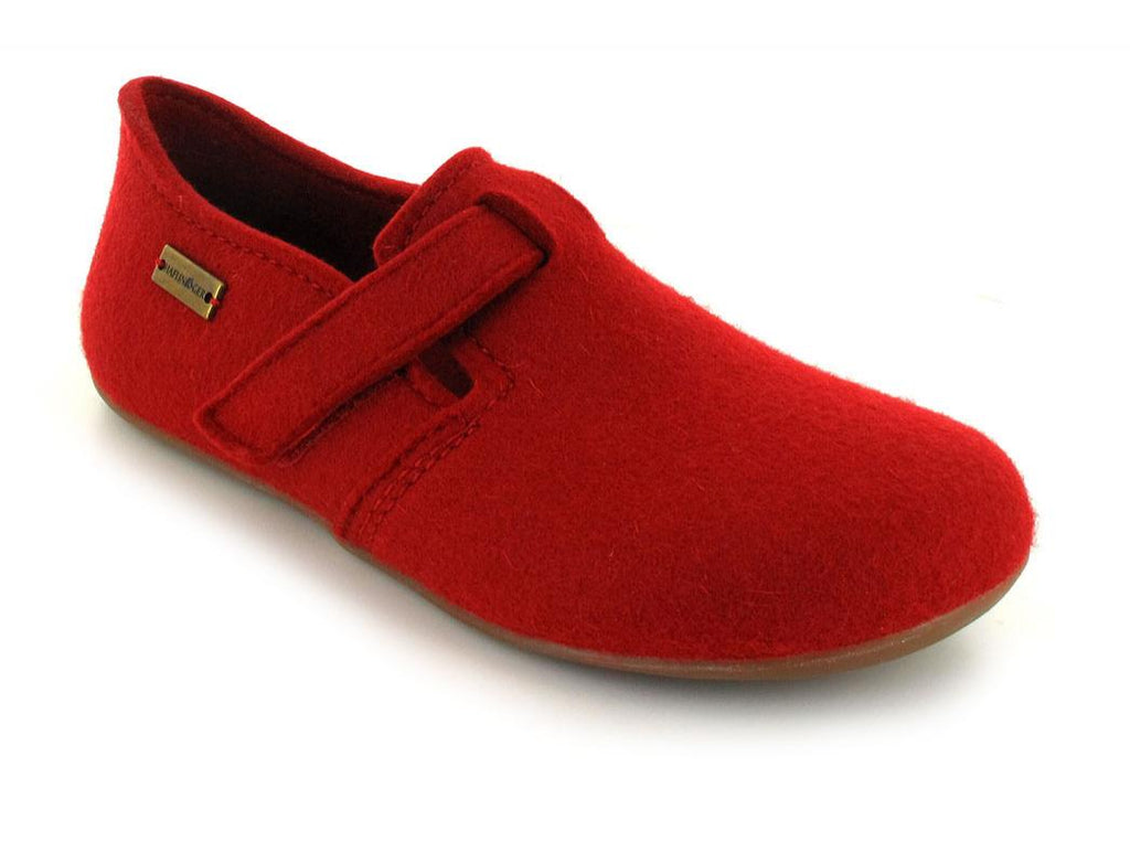 Your feet are the hardest working part of your body and they assist in some of the most basic functions of living. Because Haflinger understand this, they have created functional slippers to give your feet the much needed support and TLC they deserve. The HAFLINGER® Hook-and-Loop Focus slipper is one such creation, designed to love your feet. Made from 100% wool felt, these closed-heel slippers come with a hook-and-loop strap feature that allows you to easily slip-on the slipper and fasten the strap across your foot. These slippers enfold your feet in a warm glove-like embrace, with the inherent insulating quality of the wool felt retaining the cosy warmth around your foot. But with the breathable nature of wool felt, your feet will be entirely comfortable within the enclosed slipper, because the fabric allows excess moisture to escape into the air 7 times faster than other synthetic fabrics. So you can choose to wear these slippers with or without stockings, because your feet will remain both sweat and odor-free all day. The flexible fabric of these unisex slippers, coupled with the rounded front, ensure that these slippers will not aggravate your corns or bunions with the correct size selection. In addition, the felt insole of this slipper provides removable arch support, and is supported by a flexible & lightweight rubber sole. You will feel practically weightless in these unisex slippers, and be able to move about quickly, lightly and silently in them.
