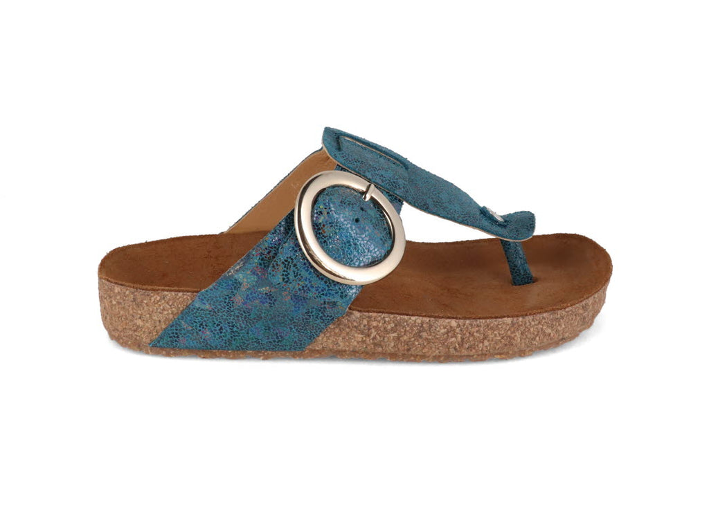 HAFLINGER Leather Sandal | Round Buckle Corinna, Blue