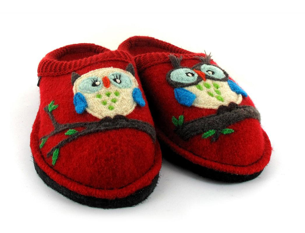 HAFLINGER® Olivia Owl Slippers are great for indoor use throughout the house and in all seasons. What makes them the best choice for house slippers is because wool is naturally water-resistant, repelling moisture vapor through its fibers and making it resistant to rot, mold, and mildew. In fact the latex coating on the foot-bed ensures that these slippers are anti-slip, making them perfect house-slippers and safely walking you from bathroom to kitchen and back.