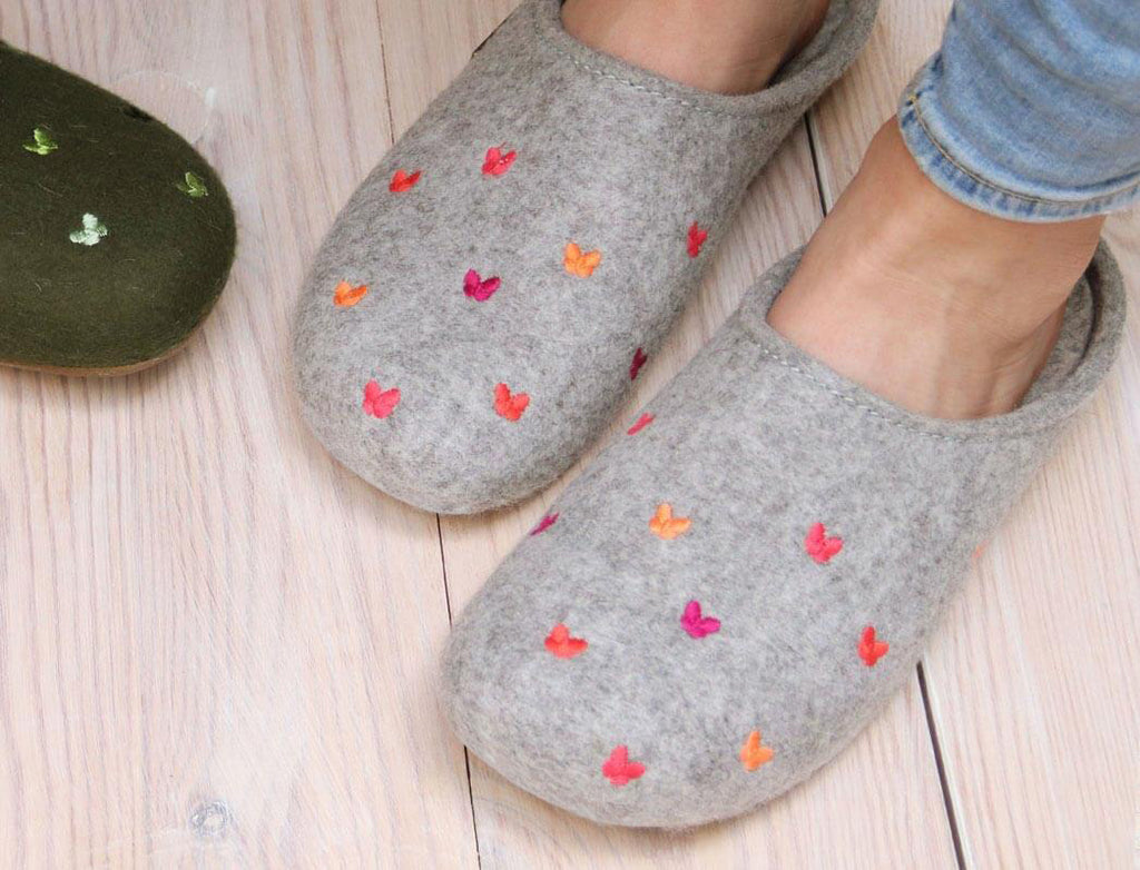 HAFLINGER Slipper | Everest Farfalline, Stone Gray
