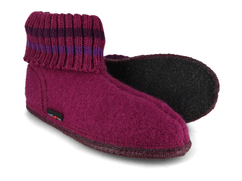 HAFLINGER Women Boiled Wool Slipper Boots 'Paul', mulberry
