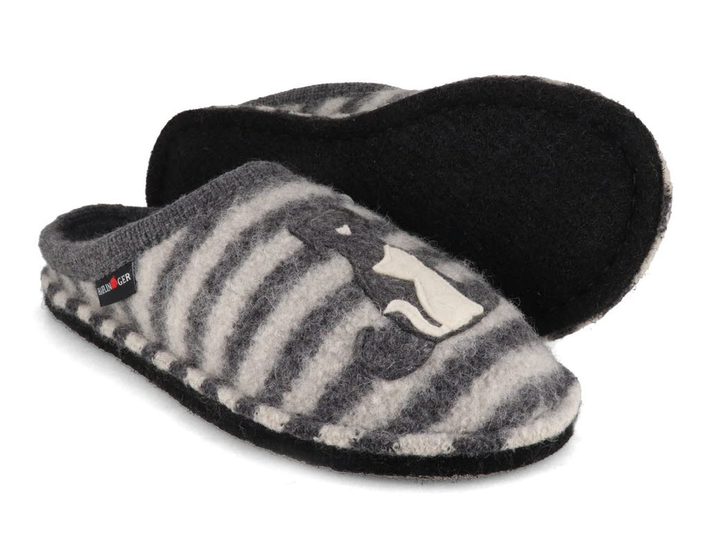 HAFLINGER Women Boiled Wool Slippers 'Flair Canegatto', anthracite