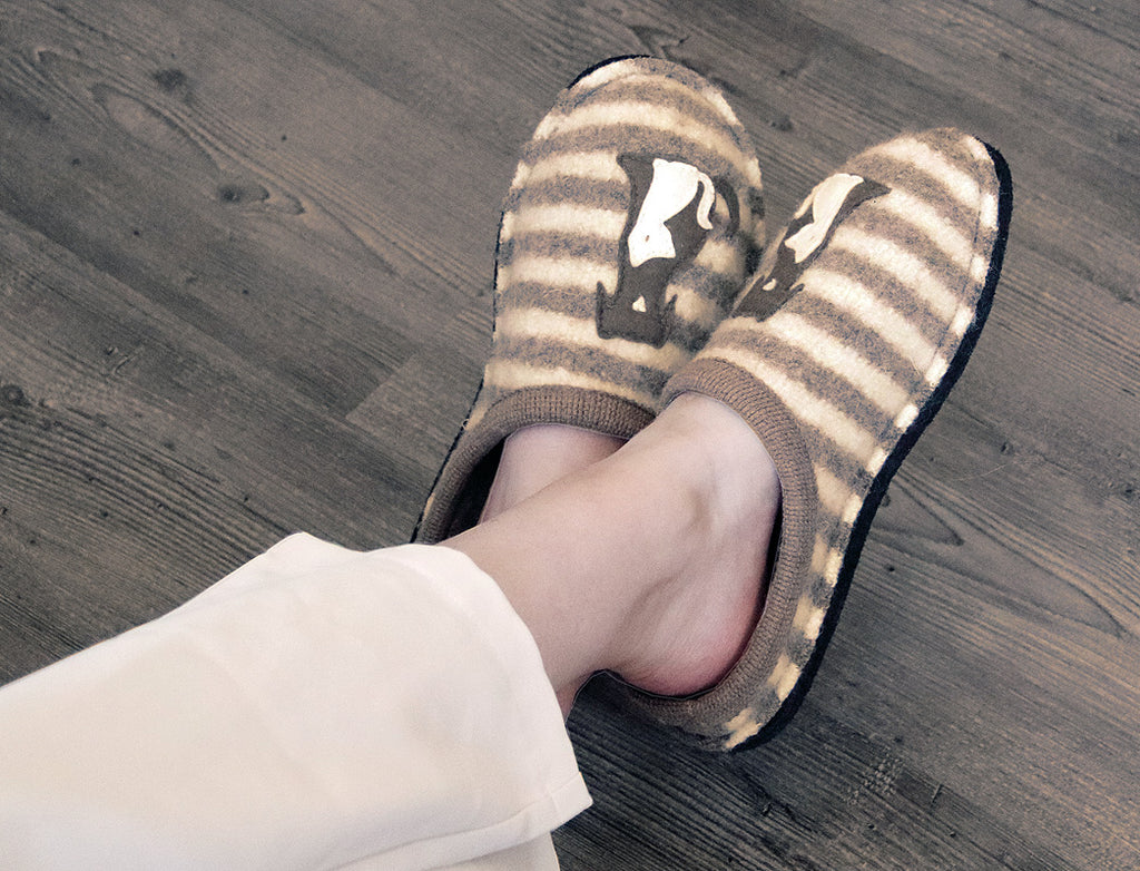 HAFLINGER Women Boiled Wool Slippers 'Flair Canegatto', beige