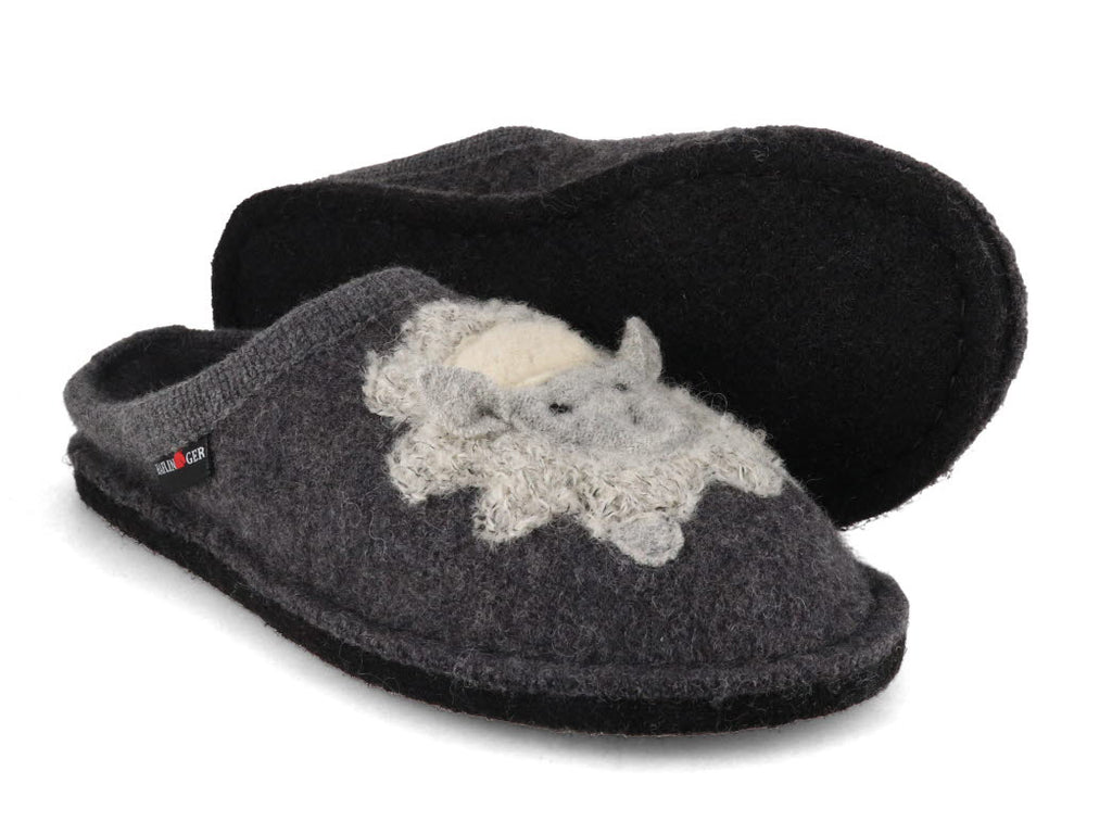 HAFLINGER Women Boiled Wool Slippers 'Flair Lamby', anthracite