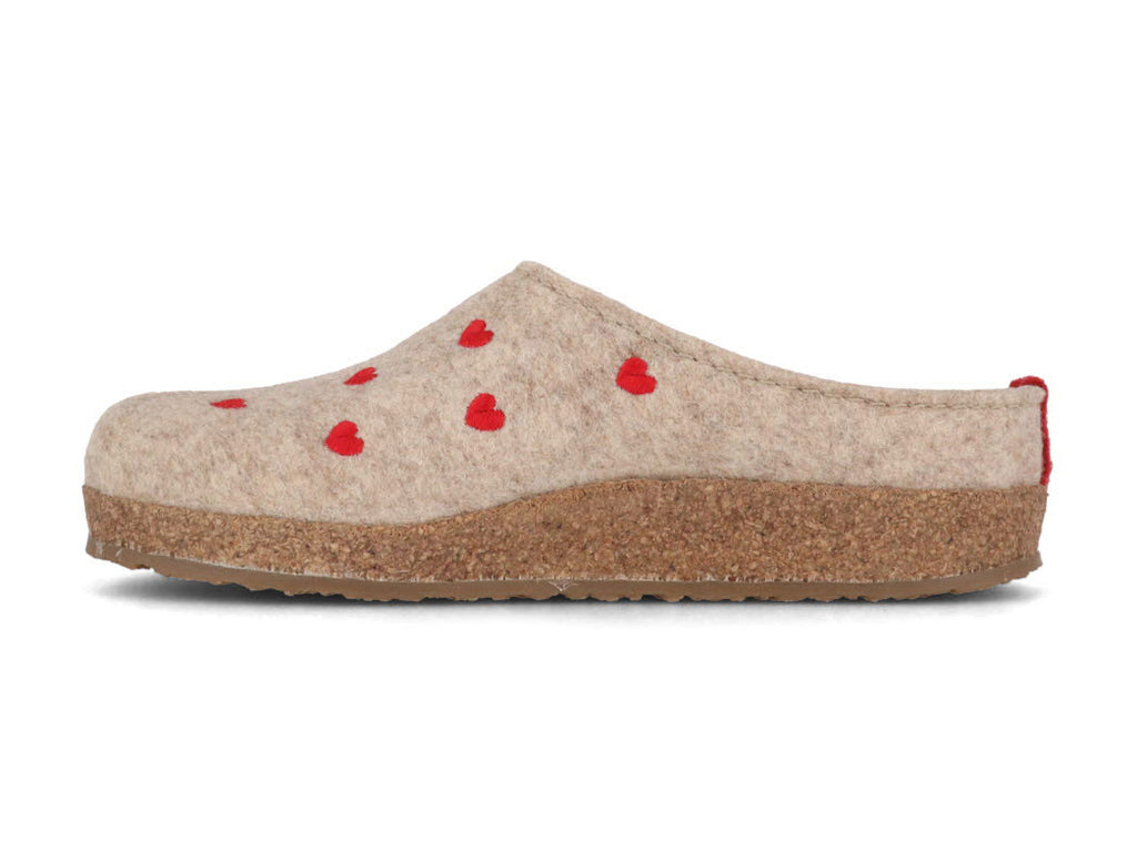 HAFLINGER Women's Felt Clogs Grizzly 'Cuoricino', Beige
