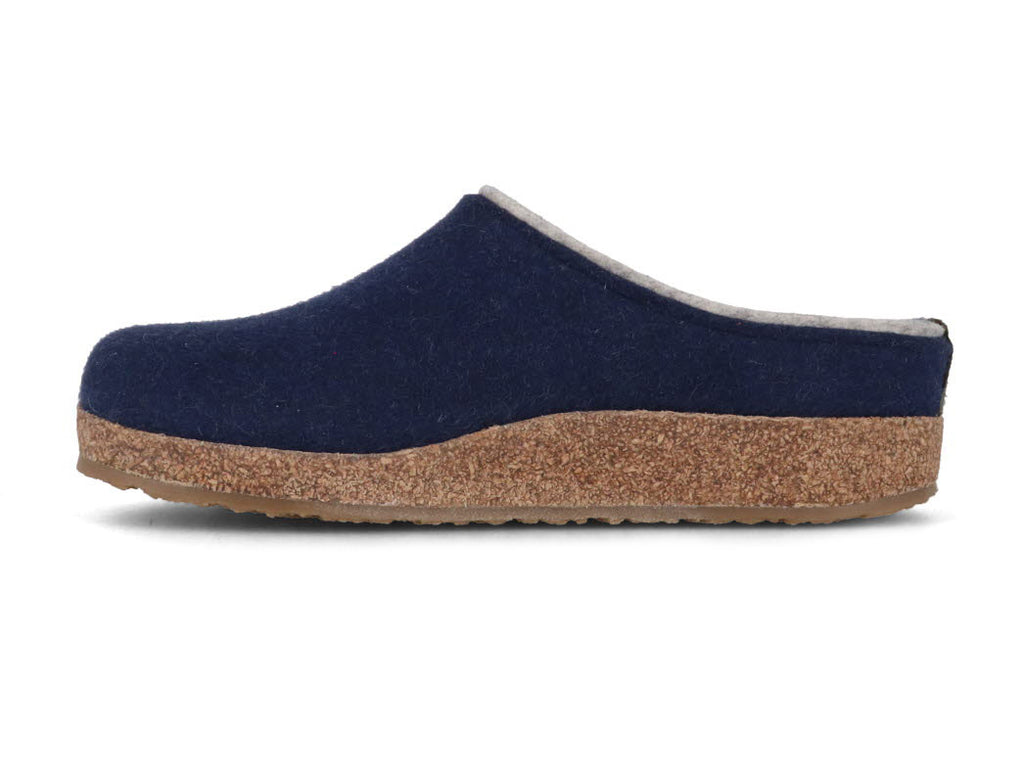 Experience classic comfort with HAFLINGER's Grizzly Kris clogs. Made from 100% pure wool felt, these clogs offer a soft, cozy feel and natural temperature regulation. The timeless Grizzly design is perfect for both men and women, while the jeans blue adds a touch of casual style. A durable sole makes them suitable for indoor and light outdoor wear.