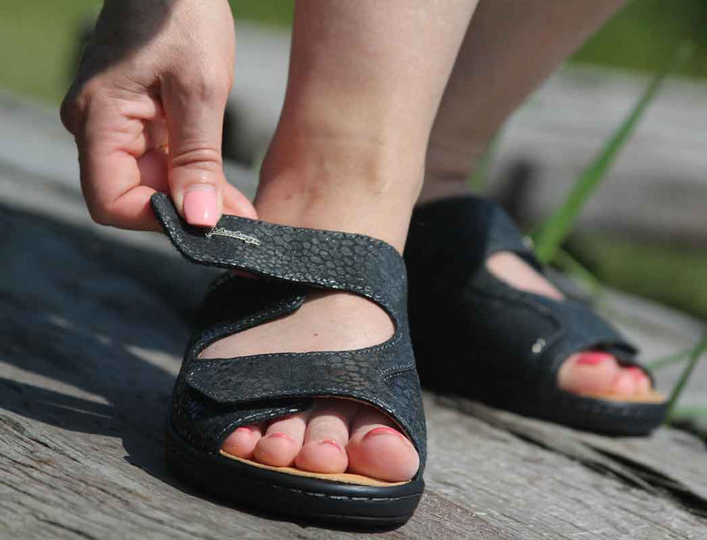 HICKERSBERGER Herbs Fit Gel Women Hallux Mules 'Vario', charcoal croco