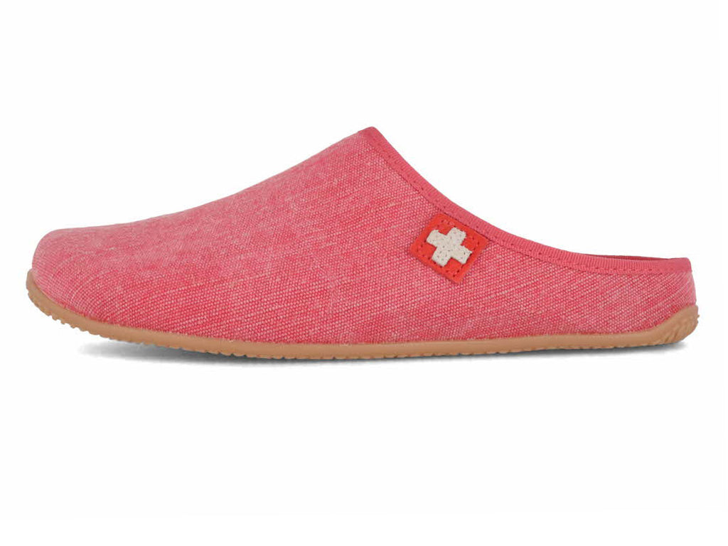 Living Kitzbuehel Women Cotton Slippers ‘Swiss Cross’, flamingo