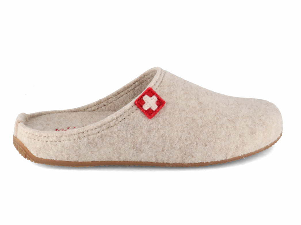 Living Kitzbuehel Women Felt Slippers 'Swiss Cross', unbleached