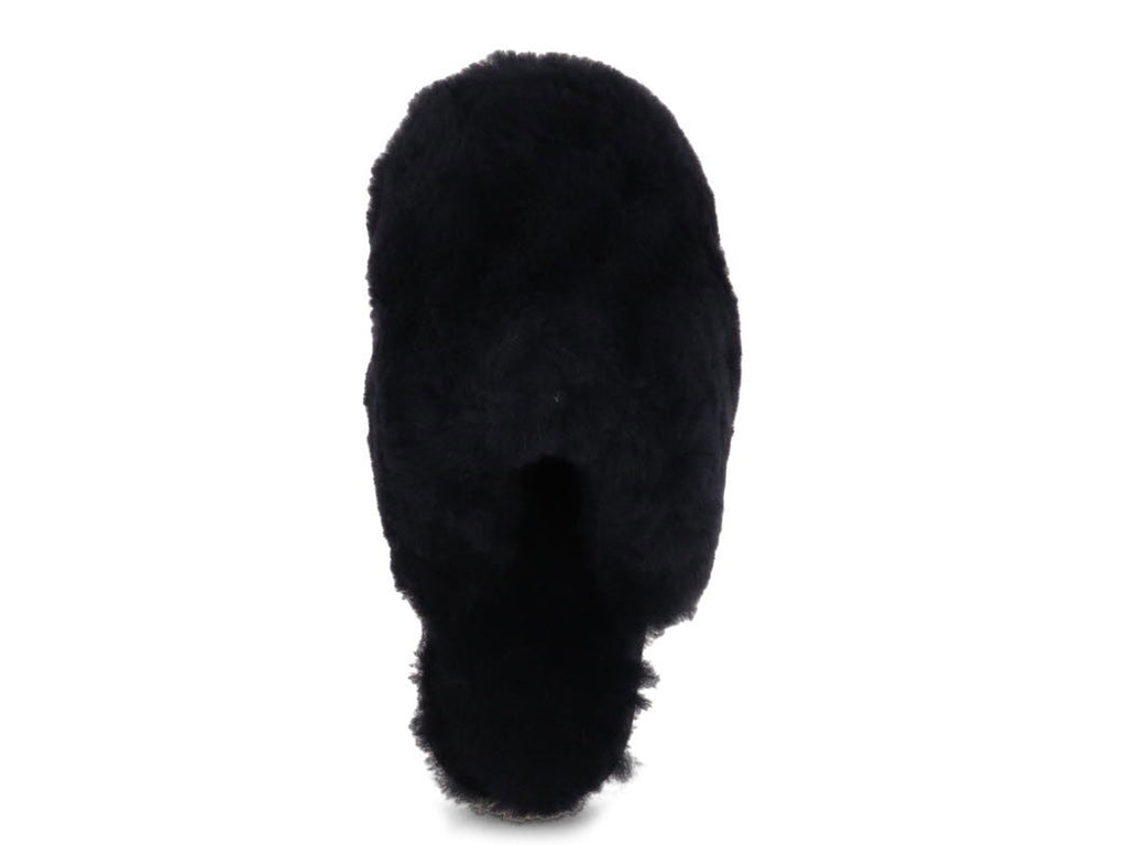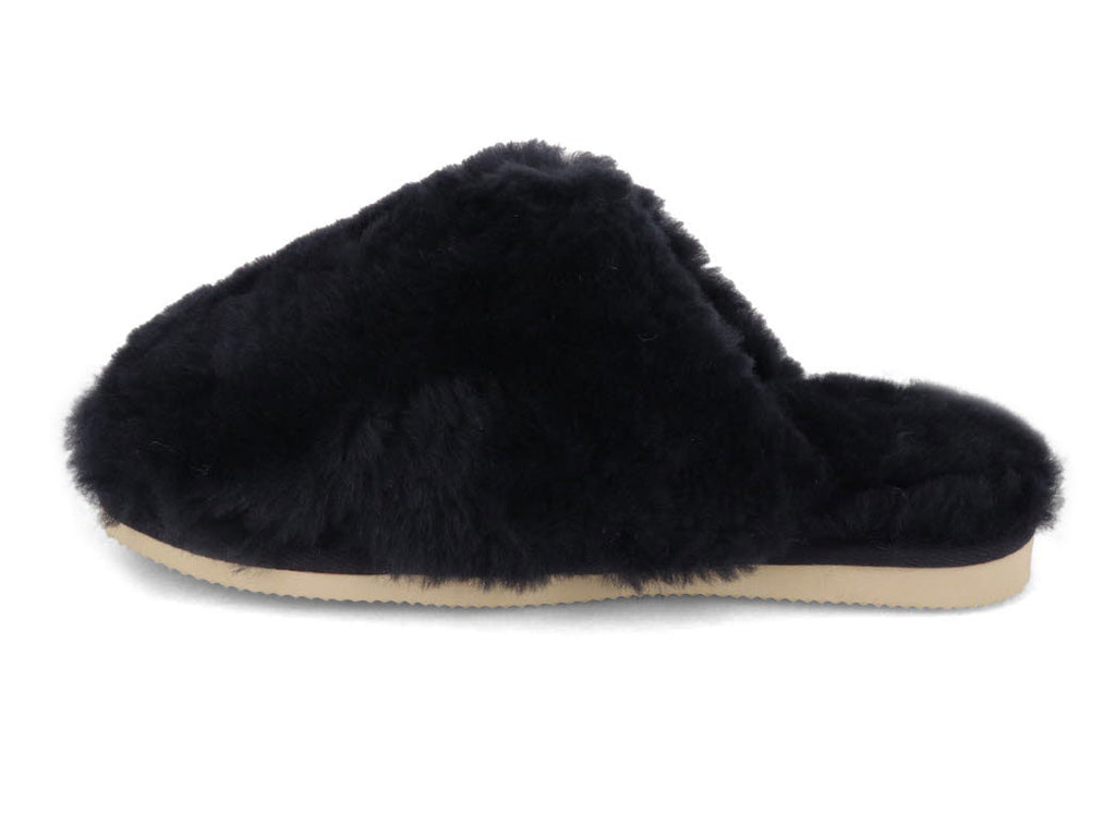 THIES Women's Sheepskin Slippers Fluffy, Navy