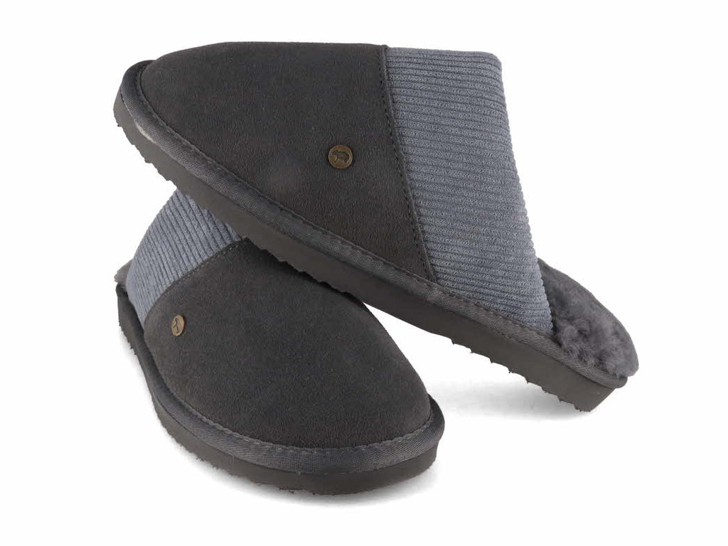 WARMBAT Men Sheepskin Slippers 'Perth', dk grey